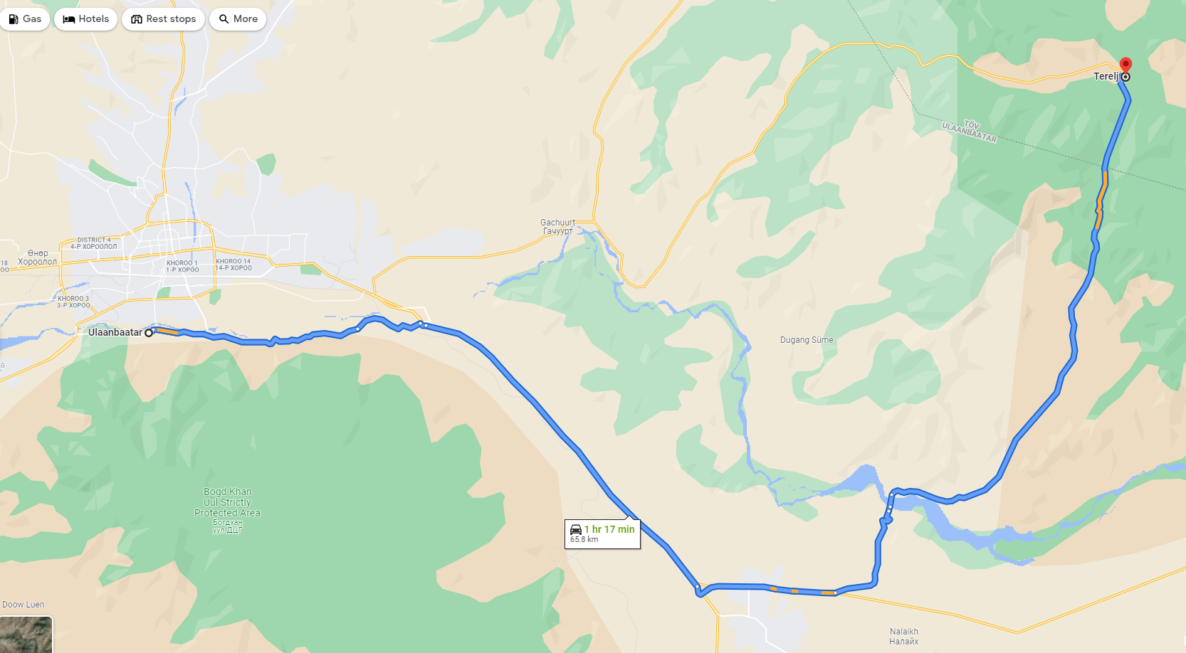 you’re on the road for Terelj. There, it’s possible to rent horses, and