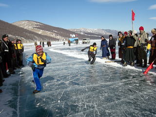 終日:フブスグル湖畔滞在。氷祭りをお楽しみいただきます。 「国際スケートマラソン大会」に参加する方の登録を行います。同大会には、選手だけなく日本、オランダ、ベルギー、ロシア、中国などの20ヵ国の観光客が参加する。100`スケートで競争する。午後:自由行動。 「ツーリストキャンプ宿泊」 |