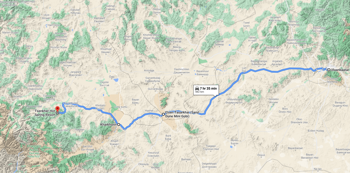 The capital of Arkhangai, about 11 hours by land from Ulaanbaatar to the