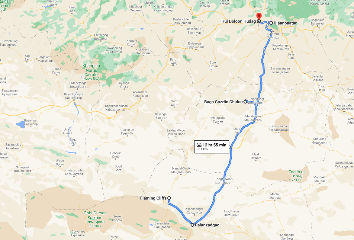 The Baga Gazriin Chuluu (small stone) is located about 37 km northwest